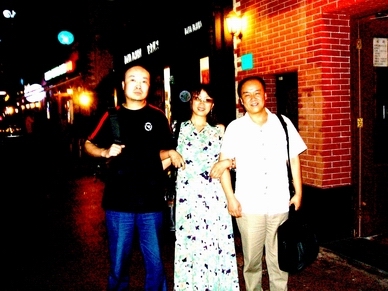 (图为东方竹子和拾荒、田平易哥俩和投资公司郑总会面后在上海的街头合影留念。)