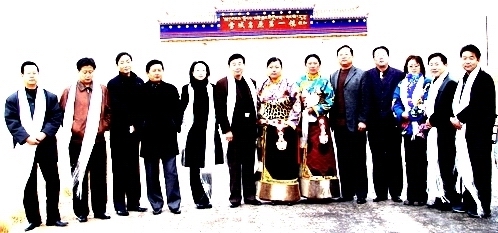 竹子和跟随青海销售公司的"送干部车队"到玉树境内,玉树销售分公司的领导带领两位藏族姑娘等在半路上献哈达。右三为竹子。左六为马总会计师。马会计一到海拔近五千米的颜青唐古拉山口就不行了,到了玉树,马总只做了一件事情,那就是接受治疗和抢救。左五为高玉英。高玉英为"送干部车队"中唯二的女子。之所以让她上去,是因为她是人事处长,要上去宣布新干部的任命。